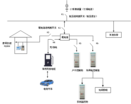 離網放電:與電動汽車、家用負載形成微電網系統,爲家用負載提供5kW的緊急供電服務。